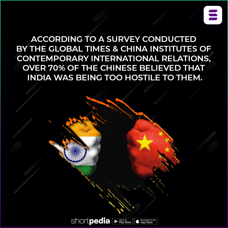 1. According to a survey conducted by the Global Times & China Institutes of Contemporary International Relations, Over 70% of the Chinese believed that India was being too hostile to them.