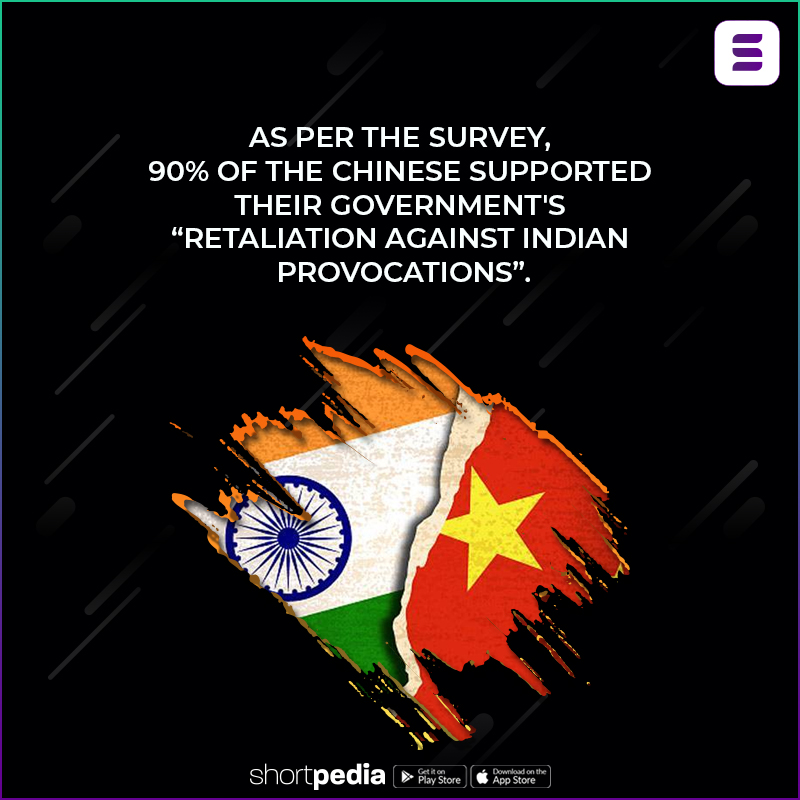 2. As per the survey, 90% of the Chinese supported their government’s “retaliation against Indian provocations”.