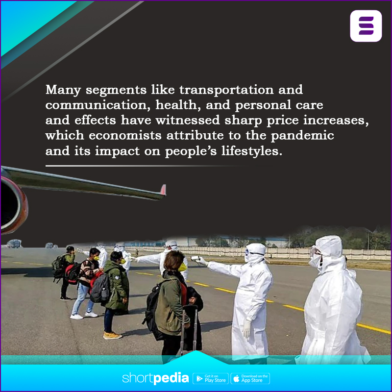 3. Many segments like transportation and communication, health, and personal care and effects have witnessed sharp price increases, which economists attribute to the pandemic and its impact on people’s lifestyles.