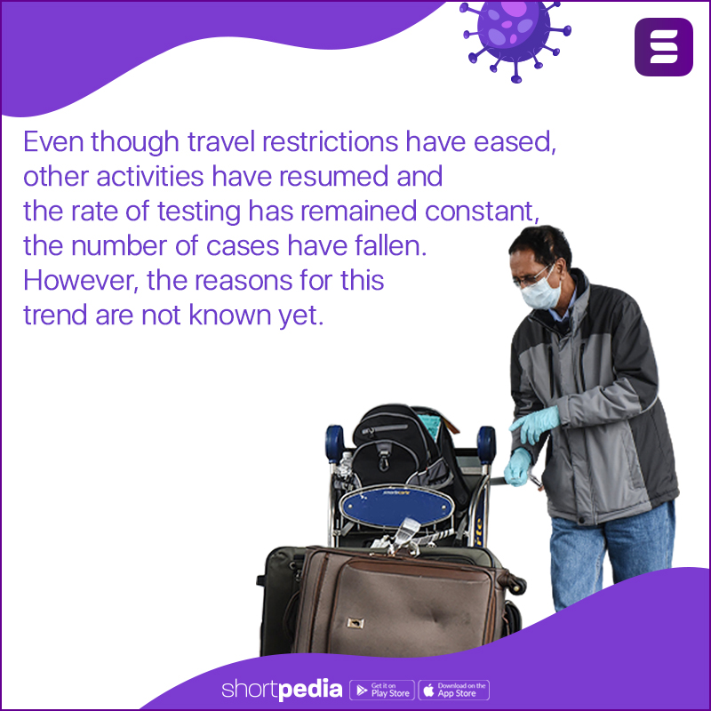 2. Even though travel restrictions have eased, other activities have resumed and the rate of testing has remained constant, the number of cases have fallen. However, the reasons for this trend are not known yet.