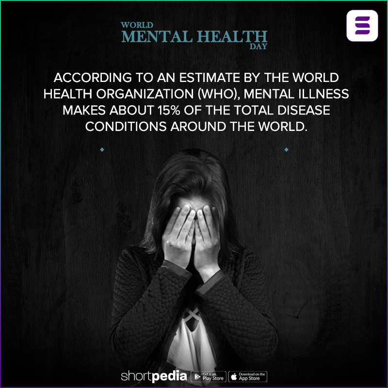 1. According to an estimate by the World Health Organization (WHO), mental illness makes about 15% of the total disease conditions around the world.