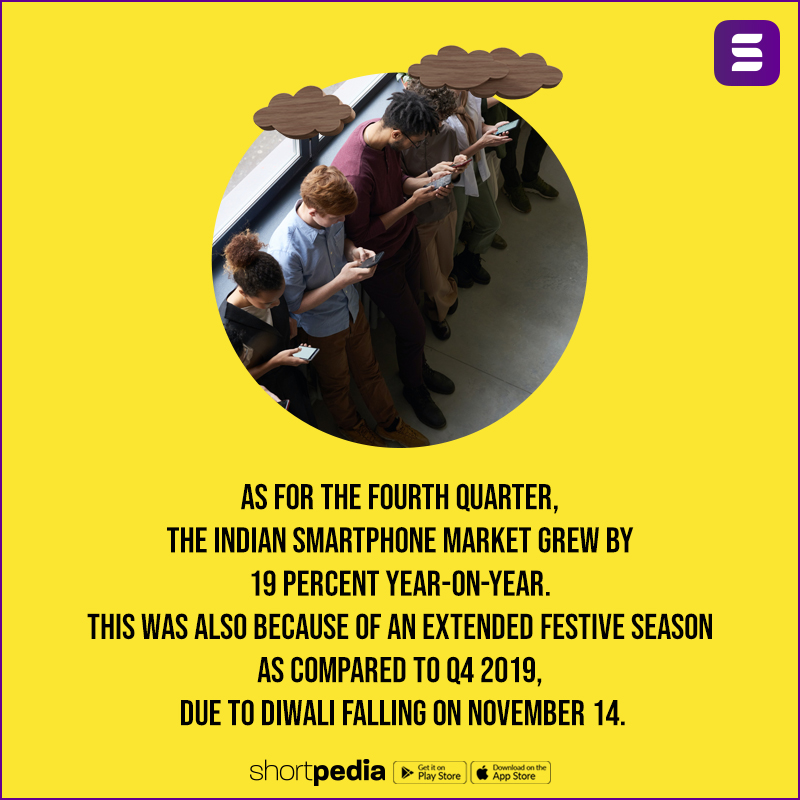 4. As for the fourth quarter, the Indian smartphone market grew by 19 percent year-on-year. This was also because of an extended festive season as compared to Q4 2019, due to Diwali falling on November 14.