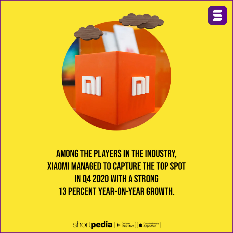 7. Among the players in the industry, Xiaomi managed to capture the top spot in Q4 2020 with a strong 13 percent year-on-year growth.