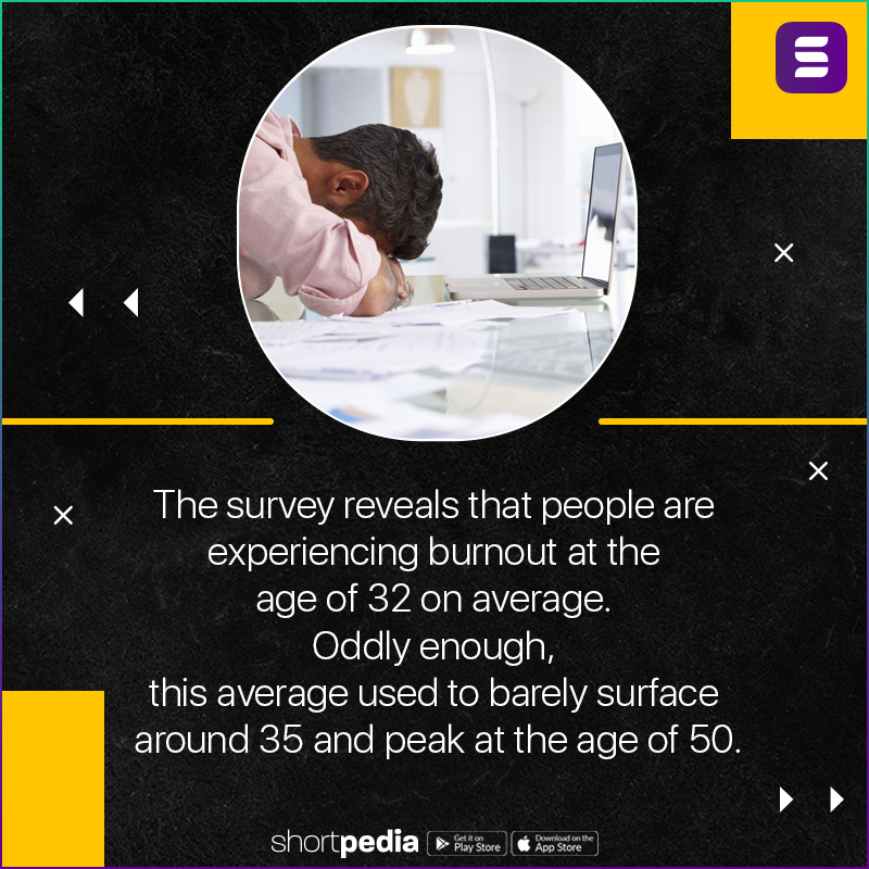 3. The survey reveals that people are experiencing burnout at the age of 32 on average. Oddly enough, this average used to barely surface around 35 and peak at the age of 50.