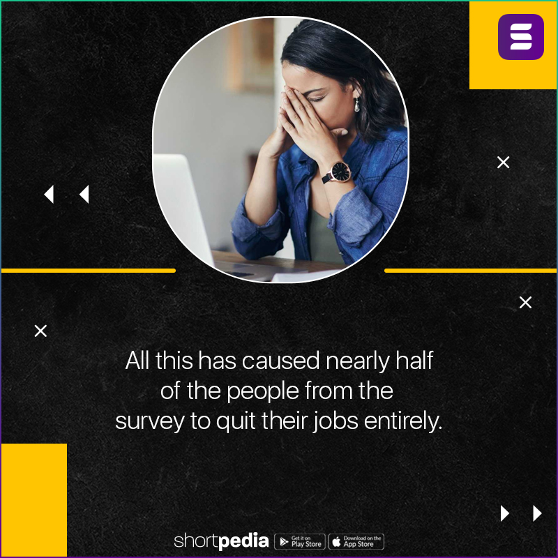 8. All this has caused nearly half of the people from the survey to quit their jobs entirely.