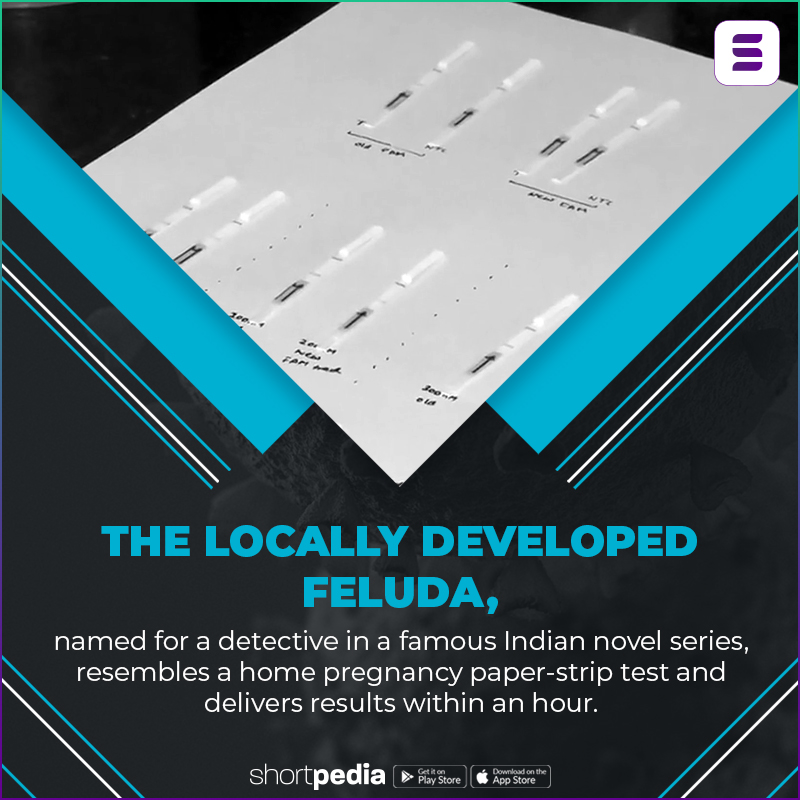 3. The locally developed Feluda, named for a detective in a famous Indian novel series, resembles a home pregnancy paper-strip test and delivers results within an hour.