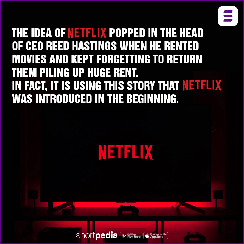 1. The idea of Netflix popped in the head of CEO Reed Hastings when he rented movies and kept forgetting to return them piling up huge rent. In fact, it is using this story that Netflix was introduced in the beginning.