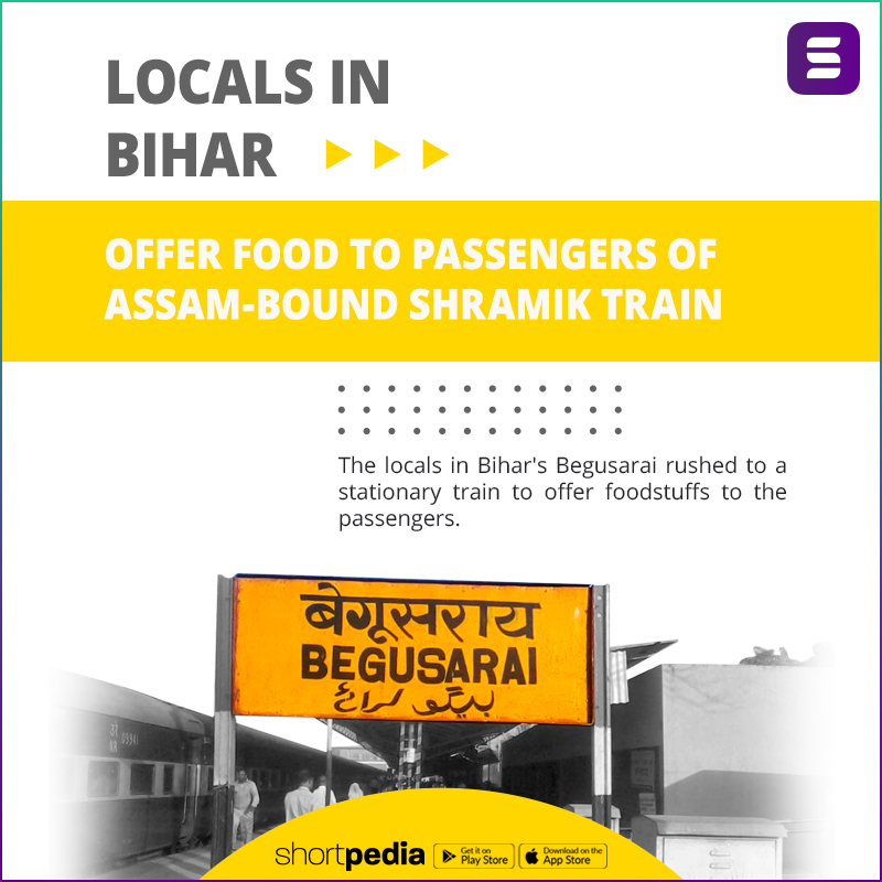 The locals in Bihar’s Begusarai rushed to a stationary train to offer foodstuffs to the passengers.
