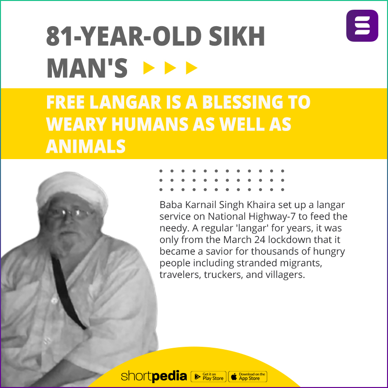Baba Karnail Singh Khaira set up a langar service on National Highway-7 to feed the needy. A regular ‘langar’ for years, it was only from the March 24 lockdown that it became a savior for thousands of hungry people including stranded migrants, travelers, truckers, and villagers