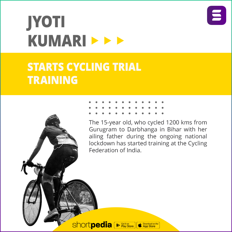 The 15-year old, who cycled 1200 kms from Gurugram to Darbhanga in Bihar with her ailing father during the ongoing national lockdown has started training at the Cycling Federation of India.