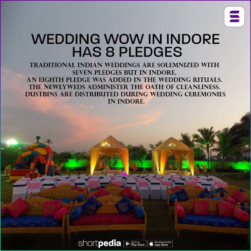 Traditional Indian weddings are solemnized with seven pledges but in Indore, an eighth pledge was added in the wedding rituals. The newlyweds administer the oath of cleanliness. Dustbins are distributed during wedding ceremonies in Indore.