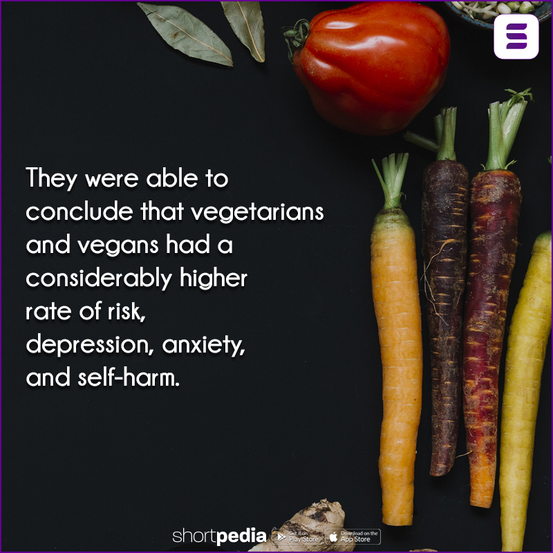 3. They were able to conclude that vegetarians and vegans had a considerably higher rate of risk, depression, anxiety, and self-harm.