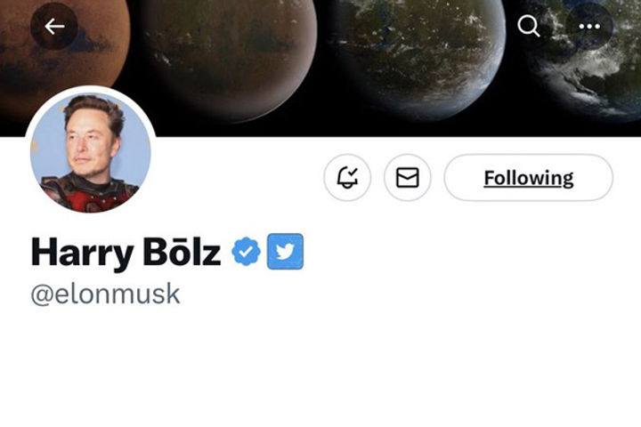 Elon Musk briefly changes his Twitter name to Harry Bōlz