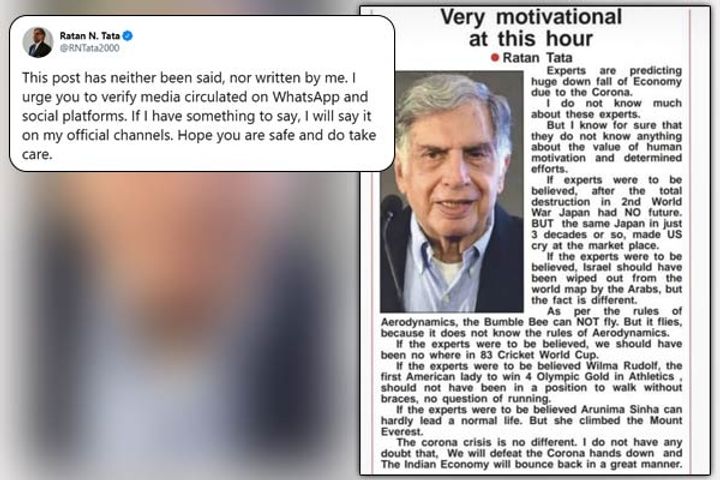 While the nation is struggling to cope with the coronavirus outbreak, fake news are being circulated on social media. Even though the government has taken measures to combat fake news, it has become difficult to trace those who are responsible for spreading misinformation. Recently, Ratan Tata busted fake news, tweeted to clarify a quote over the impact of COVID-19 on the economy that was not told or written by him.