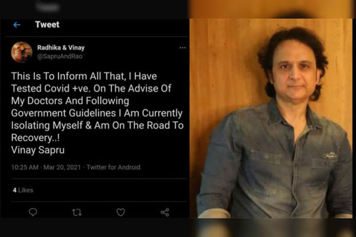 Writer- director Vinay Sapru has tested Positive for COVID-19 as of today morning. He is currently home quarantined and is following BMC’s rules and regulations. Director duo Vinay - Radhika just wrapped the shooting of a music video with Rakul Preet and Arjun Kapoor for their upcoming film. Taking to his Twitter Vinay wrote, This is to inform all that, I have tested COVID positive.