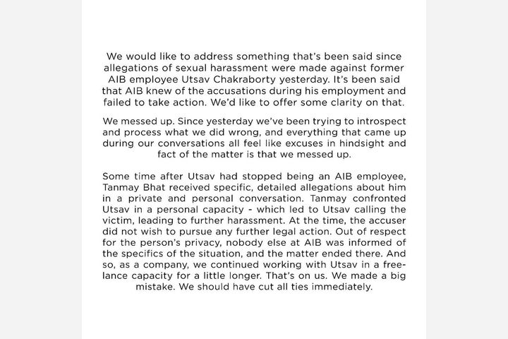 AIB releases fresh statement, apologizing for messing up about Utsav
