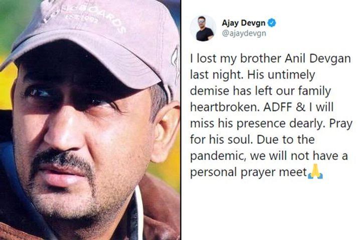 Actor Ajay Devgn's brother Anil Devgan breathed his last on October 5, 2020. The actor took to social media and mourned the demise of his brother with a heartfelt message. Anil Devgan is the son of Prem Prakash Devgan and is Ajay Devgn's cousin brother. He was 45. Ajay Devgn wrote: I lost my brother Anil Devgan last night. His untimely demise has left our family heartbroken. ADFF & I will miss his presence dearly.