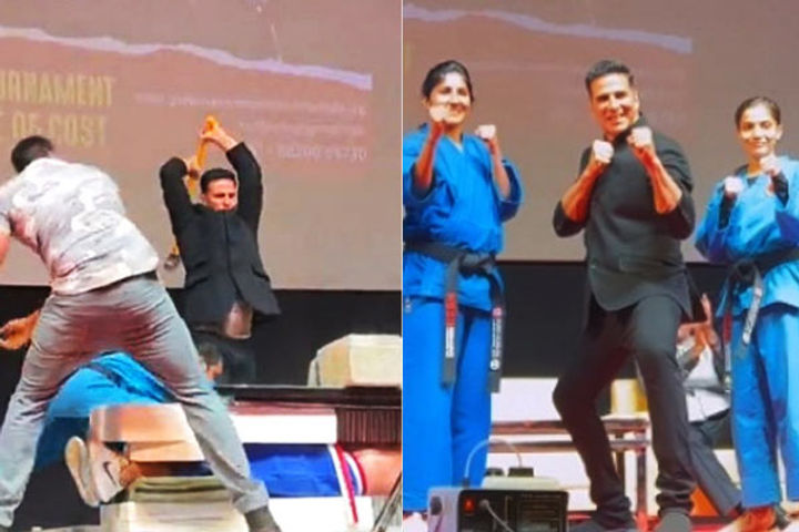 Akshay Kumar breaks bricks with a hammer at International Kudo tournament