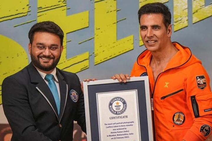 Actor Akshay Kumar has broken a Guinness World Record for the most selfies taken in three minutes at a meet-and-greet with fans in Mumbai for the promotion of his upcoming movie Selfiee. The superstar is the title holder with 184 selfies. Akshay Kumar has broken the previously held world record of 168 selfies taken in three minutes by James Smith (USA) aboard the Carnival Dream cruise ship on 22 January 2018.
