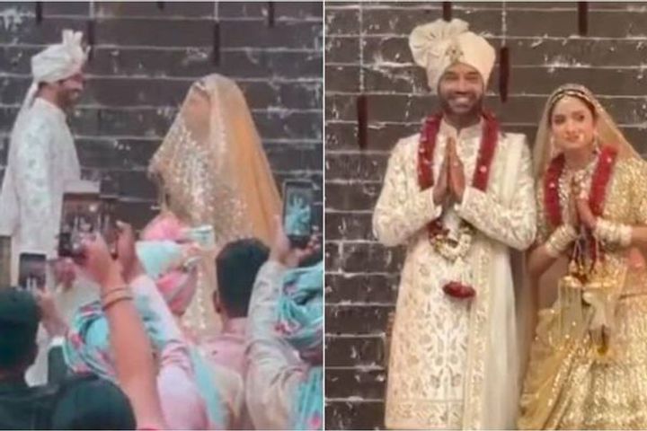 Actor Ankita Lokhande on Tuesday tied the knot with businessman Vicky Jain in an intimate ceremony here attended by the couple's family and friends from the industry. The couple's wedding ceremony was held at the city's Grand Hyatt Hotel, where Lokhande's friends from the industry, including actors Amruta Khanvilkar and Srishty Rode were present.