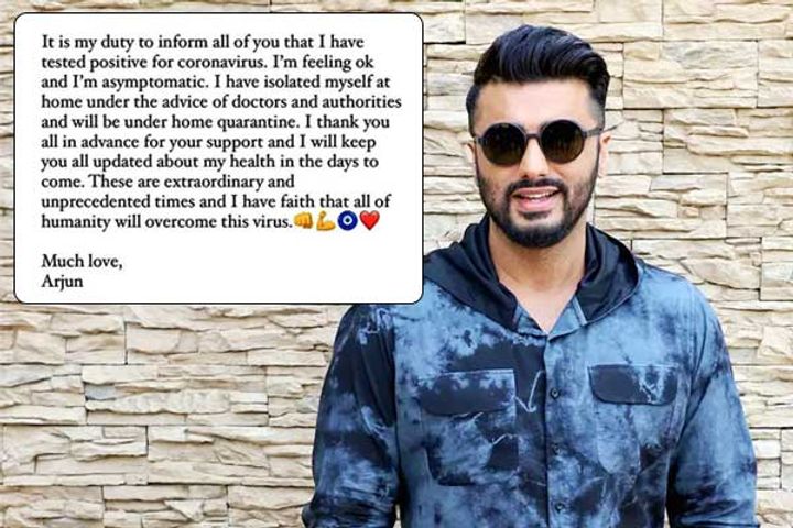 Actor Arjun Kapoor on Sunday revealed that he has tested positive for coronavirus. He took to social media to open up about his diagnosis and said that he is asymptomatic and hence, will be in home quarantine. The actor also added that he will continue to share his health update with fans on social media. It is my duty to inform all of you that I have tested positive for coronavirus. I'm feeling ok and I'm asymptomatic, he wrote.