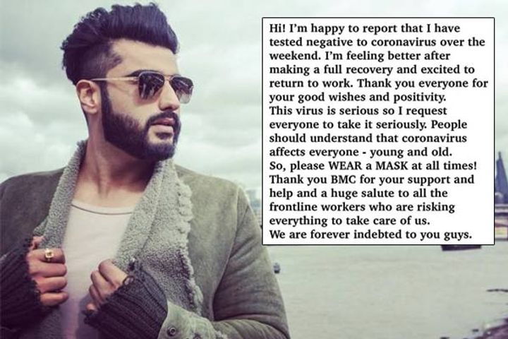 Arjun Kapoor tests negative for COVID-19, Actor requests everyone to follow safety protocols