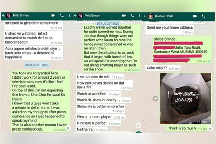 Shilpa Shinde has slammed producers Neeti & Preeti Simoes for leaking their WhatsApp conversation. In return, Shilpa too has shared a string of screenshots. Apart from that, Shinde also confirmed that she will not be returning to sets now. She wrote, Have some shame Preeti/Neeti Simoes..Screenshot nahi dalne ko bol rahi aur phir khud WhatsApp ki Chat mere replies hide karke media ko de rahi ho. Abhi kya mein bhi poori script post kar du??