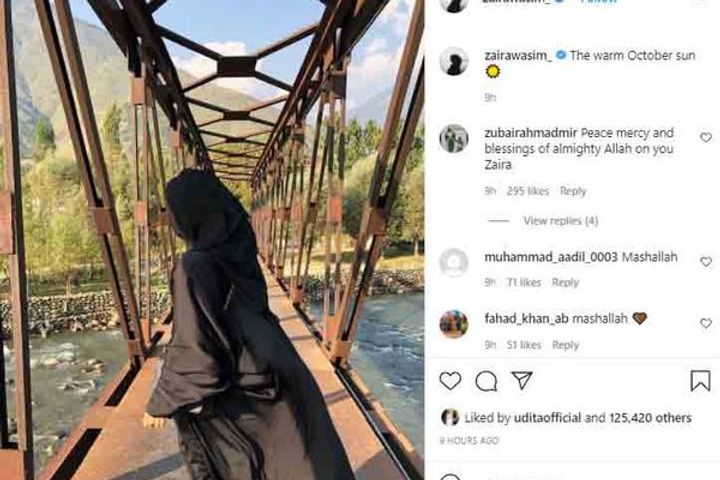 Almost two years after quitting the showbiz industry and acting career in 2019, Zaira Wasim, of 'Dangal' and 'Secret Superstar' fame shared her first picture on Instagram. In the photo shared on social media, the former actress is seen clad in a burqa and standing on a bridge, while facing her back towards the camera. Her face is not visible in the photo. She captioned the picture, "The Warm October Sun."
