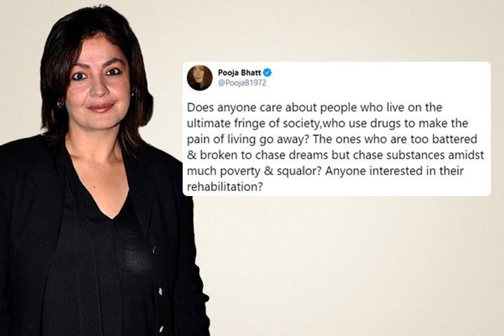 Pooja Bhatt has highlighted about the prevalence of drug abuse in a certain section of society which is done to "make the pain of living go away". Her tweet comes at a time when Bollywood is facing a drug nexus probe amid the investigation into actor Sushant Singh Rajput's death. Does anyone care about people who live on the ultimate fringe of society, who use drugs to make the pain of living go away?, tweeted Pooja Bhatt.