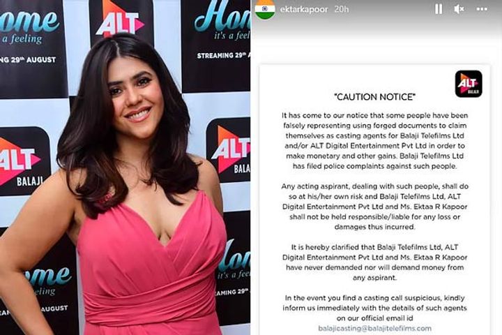 Television czarina Ektaa Kapoor and her production houses are taking legal action against fake casting calls using the filmmaker’s name. On Sunday, Ektaa issued a statement and stated that they never demanded money from any aspirant. The company is taking necessary actions and has urged people to report any suspicious casting call.