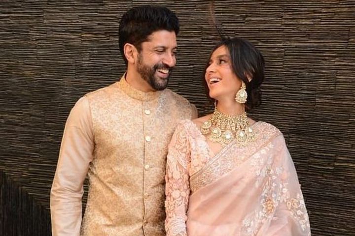 Newlyweds Farhan Akhtar and Shibani Dandekar made their first public appearance together after tying the knot. On Monday, the couple was spotted by shutterbugs in Mumbai as they reportedly stepped out for registering their civil marriage. Shibani and Farhan looked stunning together as they twinned in shades of gold and pink.