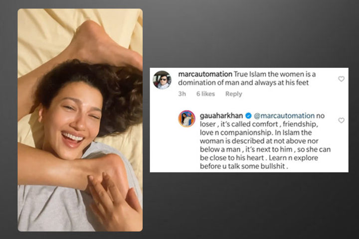 Recently, when Gauahar Khan shared a goofy video on Instagram featuring her and Zaid Darbar, a user mentioned that "True Islam the women is a domination of man and always at his feet." To which, the actress could not keep mum and gave it back to the 'loser'. No loser, it's called comfort, friendship, love n companionship. In Islam the woman is described at not above nor below a man, it's next to him, she wrote.