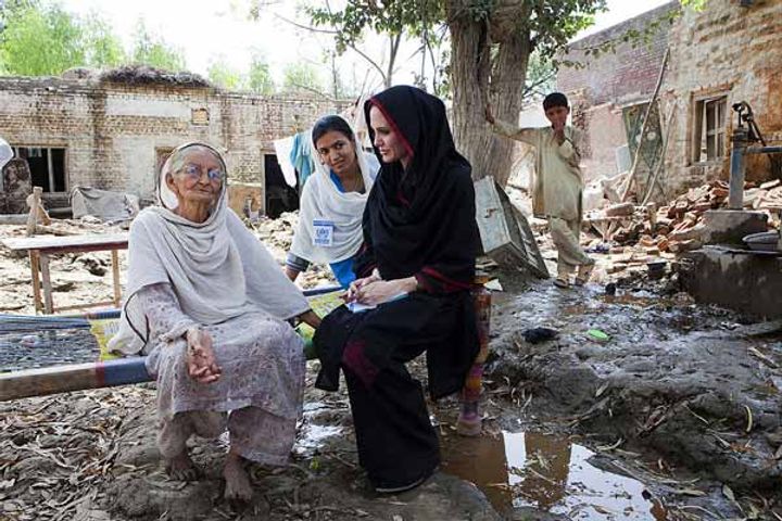 Hollywood star Angelina Jolie on Wednesday asked the global community to come forward in providing aid for victims of Pakistan's historic flooding, which has ruined the country and affected around 33 million people. She has also given an alert that the children of the affected zones will be hard hit by this calamity.