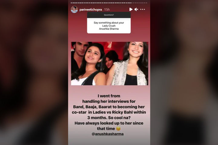 Actress Parineeti Chopra, who is currently holidaying in Turkey, took to her Instagram account to conduct an Ask Me Anything (AMA) session with her fans on Wednesday. One question asked her to comment about her ‘lady crush’ Anushka Sharma. She responded, “I went from handling her interviews for 'Band Baaja Baaraat' to becoming her co-star in 'Ladies vs Ricky Bahl' within three months. So cool na?