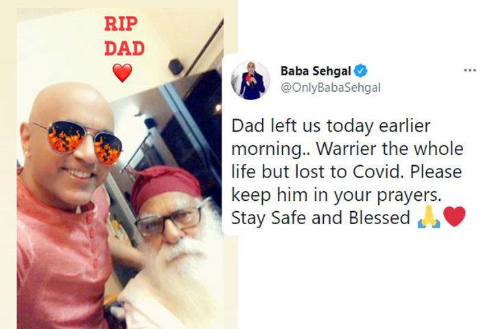 Indian rapper-singer Baba Sehgal recently took to Twitter to share the tragic news of his father's demise due to COVID-19 infection. The desi rapper shared a heartwarming picture of him and his dad which will surely get you teary-eyed. In the picture, Sehgal's father is seen sitting on a chair while the rapper takes a happy selfie with him. Warrier the whole life but lost to Covid. Please keep him in your prayers, he wrote.