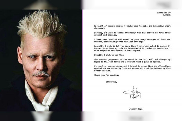 Actor Johnny Depp recently lost his libel case against the U.K. publication The Sun after they called him a "wife-beater". And that has led to the actor being asked by Warner Bros. to resign from the Fantastic Beasts 3. In his statement, Johnny mentioned that my resolve remains strong and I intend to prove that the allegations against me are false. My life and career will not be defined by this moment in time.