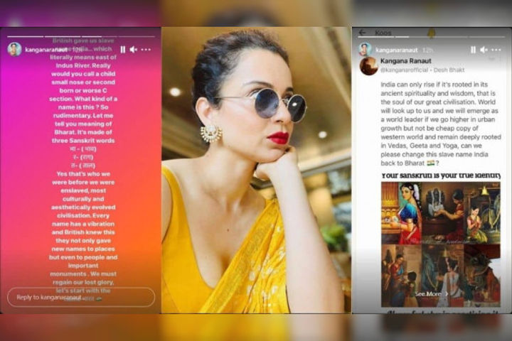 Recently, Kangana Ranaut expressed her desire for the change in India’s name back to ‘Bharat.’ Clarifying his views over it, the ‘Tanu Weds Manu’ star claimed that the name India has been given to Bharat by Britishers and also tagged it as a slave name. She shared two posts in her Instagram story where she talked about the meaning of Bharat and compared it with India, the name given by Britishers which means east of Indus River.