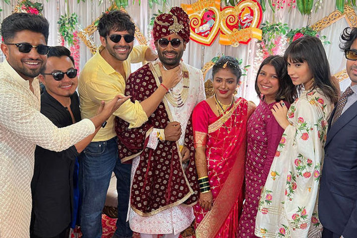 Bollywood's chocolate boy Kartik Aaryan attended his spotboy Sachin's wedding and made it even special by posing for pictures with the newly-weds. Kartik took to Instagram and posted a couple of pictures posing with the newly-weds. He penned a note for his spotboy. The actor chose to go in casuals as he was seen in a custard yellow shirt paired with denims. He wrote: "Congratulations Sachin aur Surekha. Happy Married life ahead."