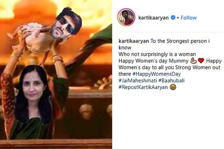 Kartik Aaryan uses Baahubali to wish his mother Happy Women's Day