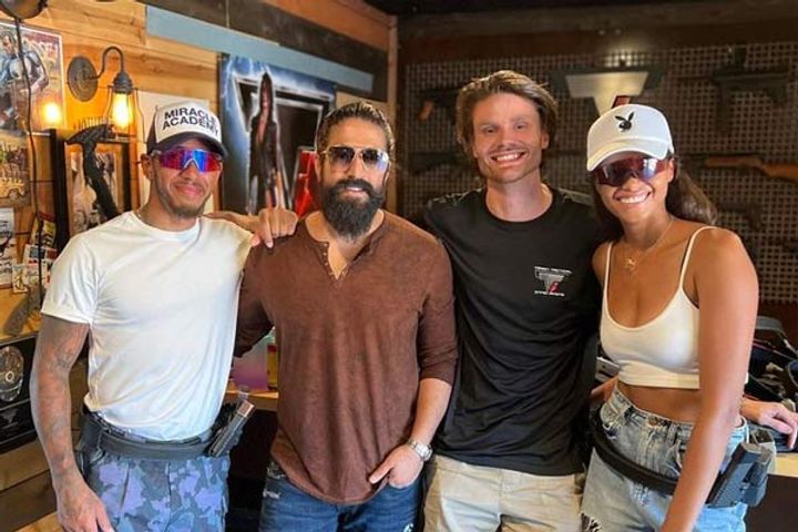 KGF superstar Yash recently met seven-time Formula One champion Lewis Hamilton in California. The two were photographed together at the tactical shooting facility, California's Taran Tactical. Along with them Resident Evil actress Ella Balinska was also seen. Kannada superstar Yash had recently shared a video with renowned American action director and stuntman JJ Perry and after that his picture with Lewis Hamilton took internet by storm.