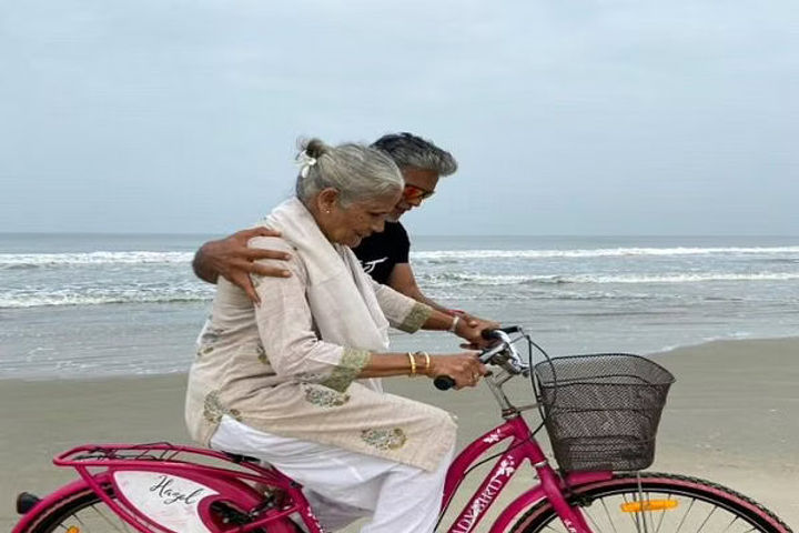 Milind Soman's 83-year-old mother cycles along the seashore