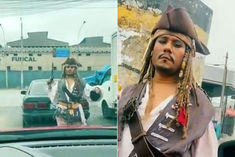 Man in captain Jack Sparrow's outfit begs on street in viral video