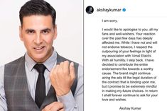 Akshay Kumar apologises for endorsing tobacco brand after backlash, seeks fans' love and wishes forever