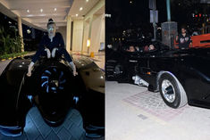 Ahmed Khan and his wife arrive in their desi swanky batmobile car at 'The Batman' movie screening