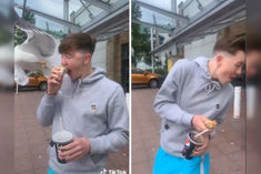Clip of KFC wrap ripped out of man's mouth by seagull foes viral