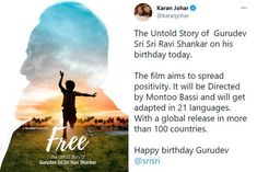 Karan Johar announces film on Sri Sri Ravi Shankar on the occasion of the spiritual leader's birthday
