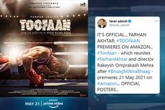 Farhan's 'Toofaan' will release on May 21 on Amazon Prime