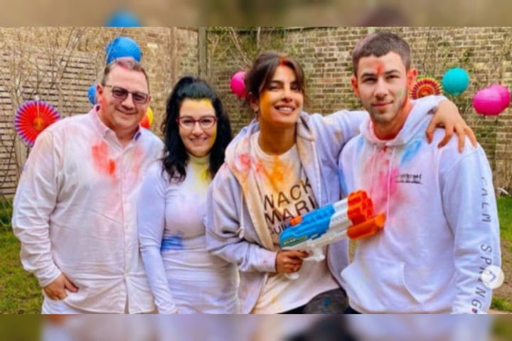Actress Priyanka Chopra, who is currently in London shooting for her upcoming film Matrix 4, took some time off to celebrate one of her ‘favourite’ festival Holi with singer husband Nick Jonas and her in-laws Paul Kevin Jonas Sr and Denise Miller-Jonas. The actress shared beautiful images from the celebration on her Instagram account, along with a message to celebrate the festival of colours safely.