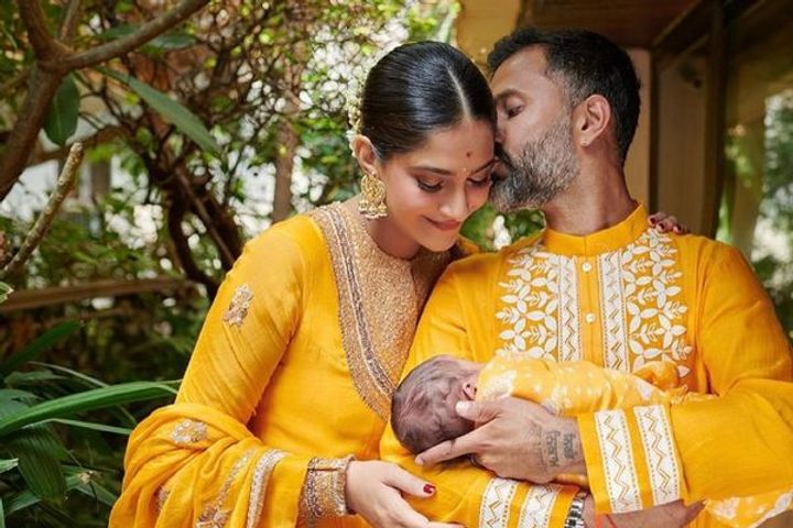 Bollywood actress Sonam Kapoor and her businessman husband Anand Ahuja have shared first photo of their son on social media. Exactly a month after they were blessed with the baby, the new parents also revealed that they have named their baby boy 'Vayu'. Sonam shared an adorable family picture in which they can be seen wearing matching traditional outfits.