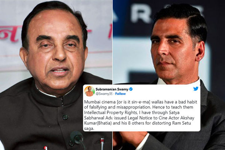 Former Rajya Sabha MP Subramanian Swamy initiated a legal notice against Bollywood actors Akshay Kumar, Jacqueline Fernandez, and others including the makers of the upcoming movie 'Ram Setu' on Sunday. In this regard, Swamy took to Twitter and said, Mumbai cinema [or is it sin-e-ma] wallas have a bad habit of falsifying and misappropriation.